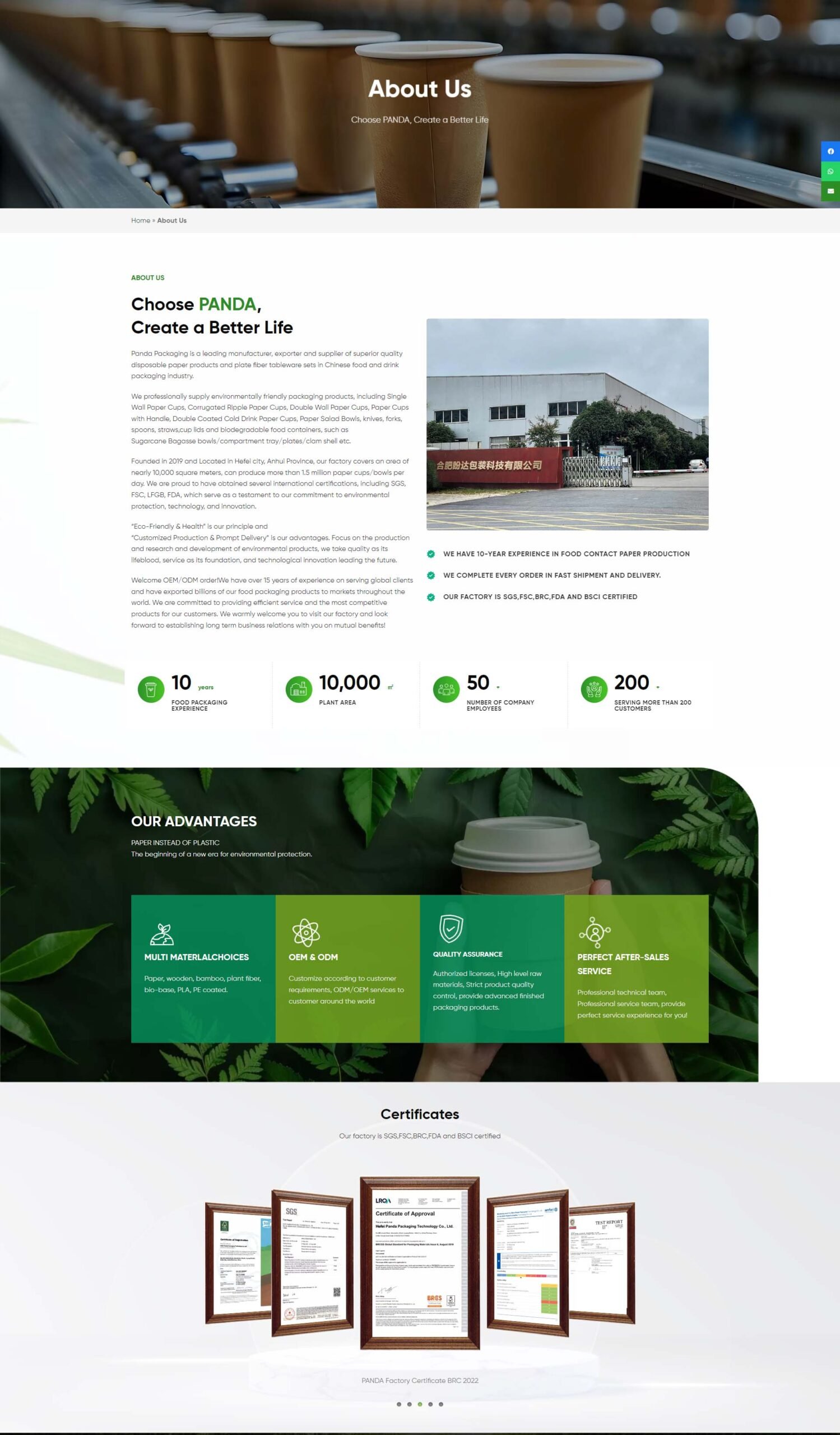 此公司專業供應環保包裝產品,包括單壁紙杯、瓦楞紙杯、雙壁紙杯、帶柄紙杯、雙面冷飲紙杯、紙質沙拉碗、刀、叉、勺、吸管、杯蓋以及可生物降解的食品容器,例如甘蔗渣碗/隔間托盤/盤子/蛤殼等。